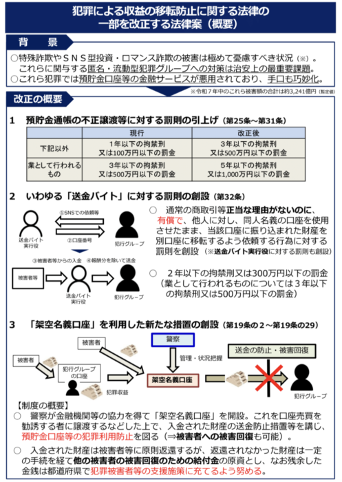 本案により、これらを利用した特殊詐欺やマネロン等の防止が図られるものと考えております。